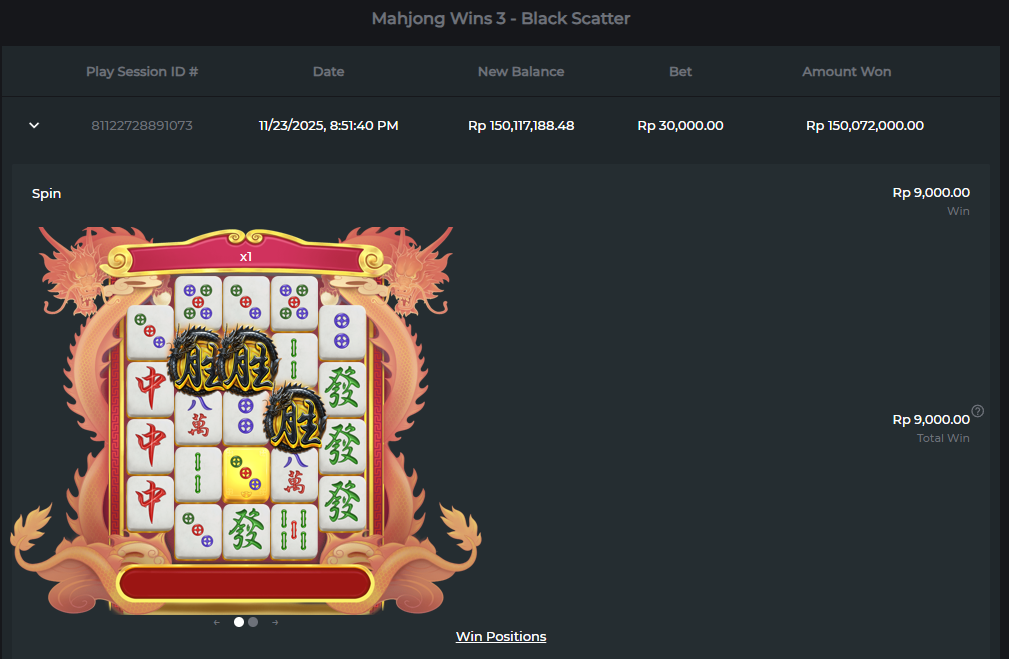 Telah mendapatkan JP besar di Mahjong wins 3
